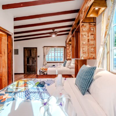 Kiskadee’s bold yellow shines like a sunbeam on the Caribbean Sea it stands feet from. With 2 queens and a daybed, it can comfortably accommodate a family of 5.
